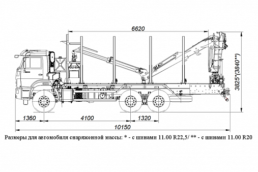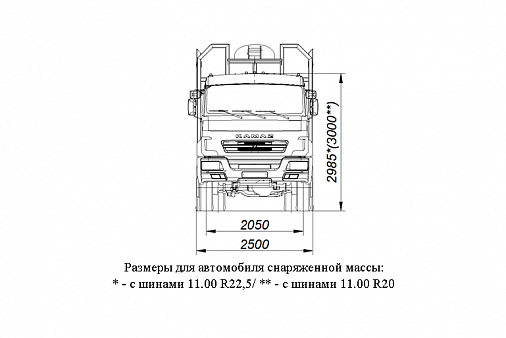 | Высота, мм | с шинами 11.00 R22,5 - 3825; с шинами 11.00 R20 - 3840 |